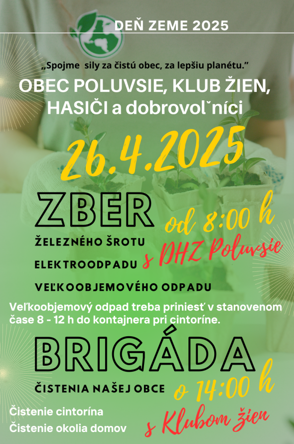 Dňa 14:00 sa uskutoční brigáda zameraná na čistenie cintorína a okolia domov, s cieľom podporiť iniciatívu za čistú obec a lepšiu planétu. Občania sú vyzývaní, aby sa zapojili a pomohli s úklidom. Okrem toho je potrebné priniesť veľkoobjemový odpad do kontajnera v stanovenom čase od 8:00 do 12:00.